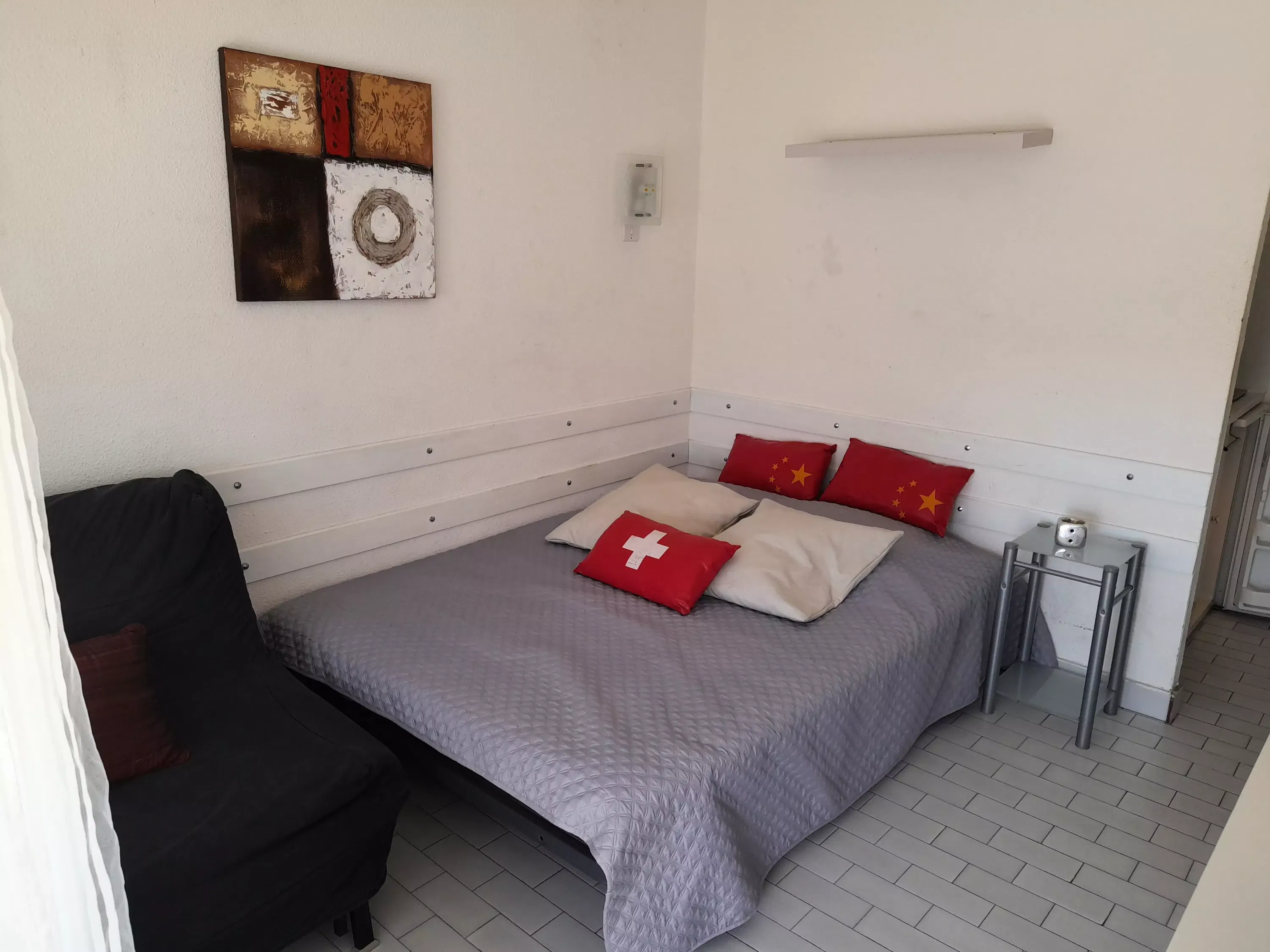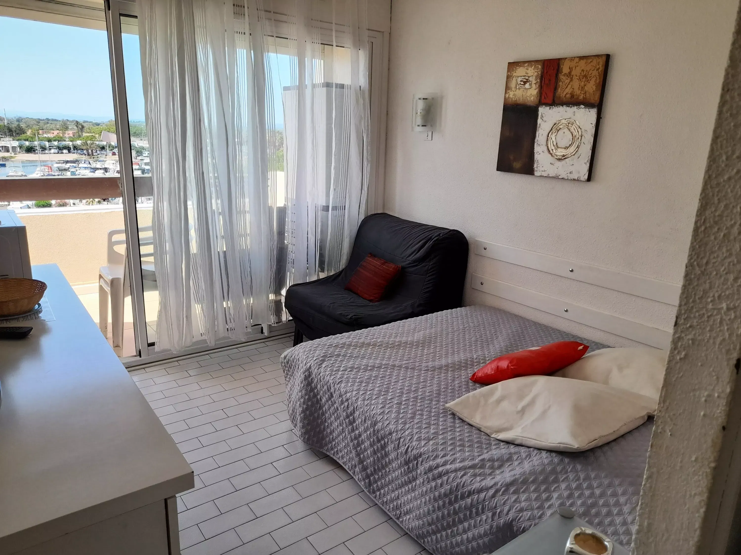 Studio für 2 Personen, gelegen in Port Nature Colline 6, im 4. Stock mit Aufzug, Blick auf den Hafen. Wohnzimmer mit 1 Bett 140cm. Küchenbereich mit Mikrowelle, Staubsauger, Senseo-Ventilator... Duschraum und separates WC. Terrasse, nach Westen ausgerichtet. Parkplatz Nr. 279.