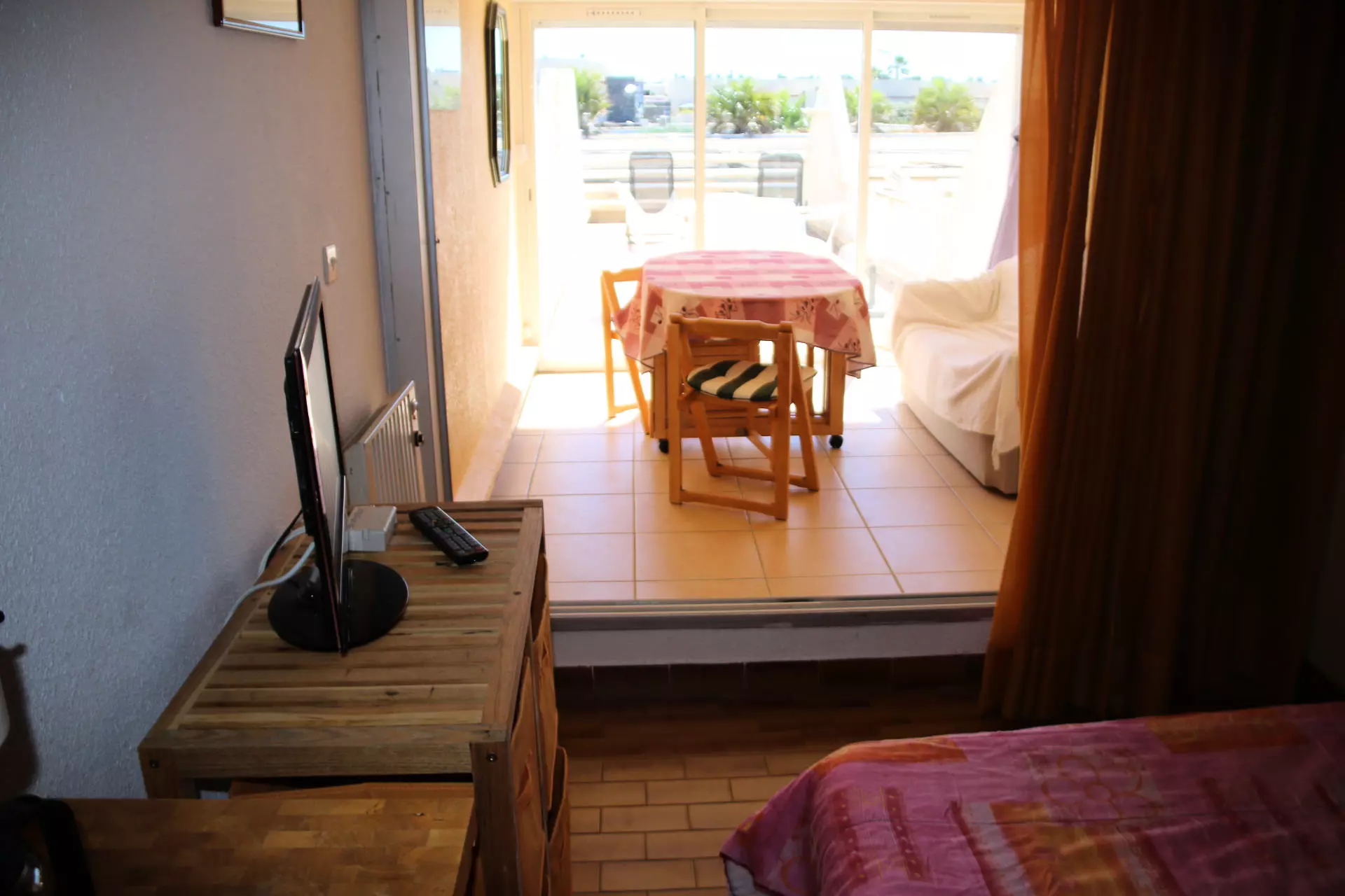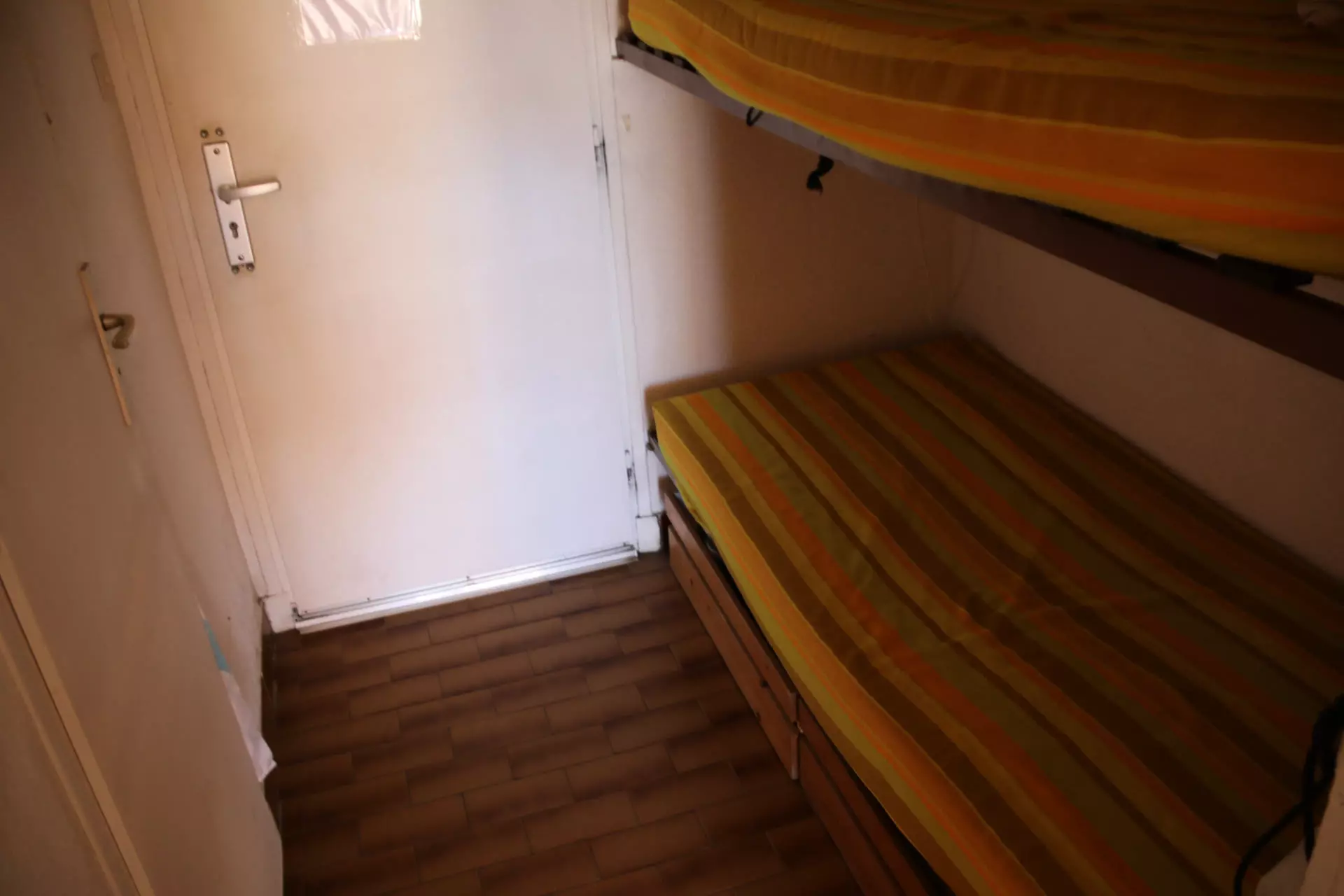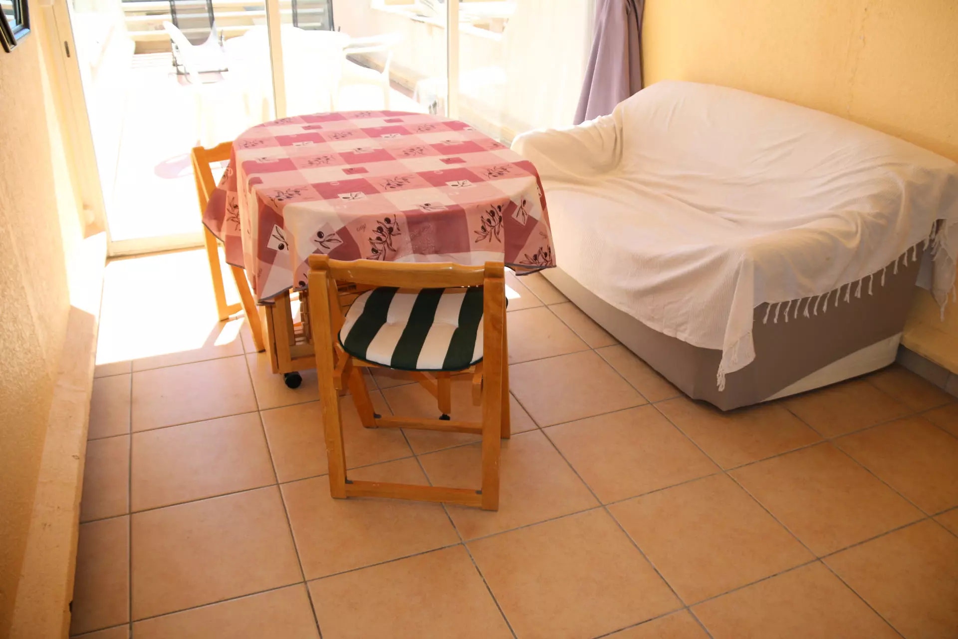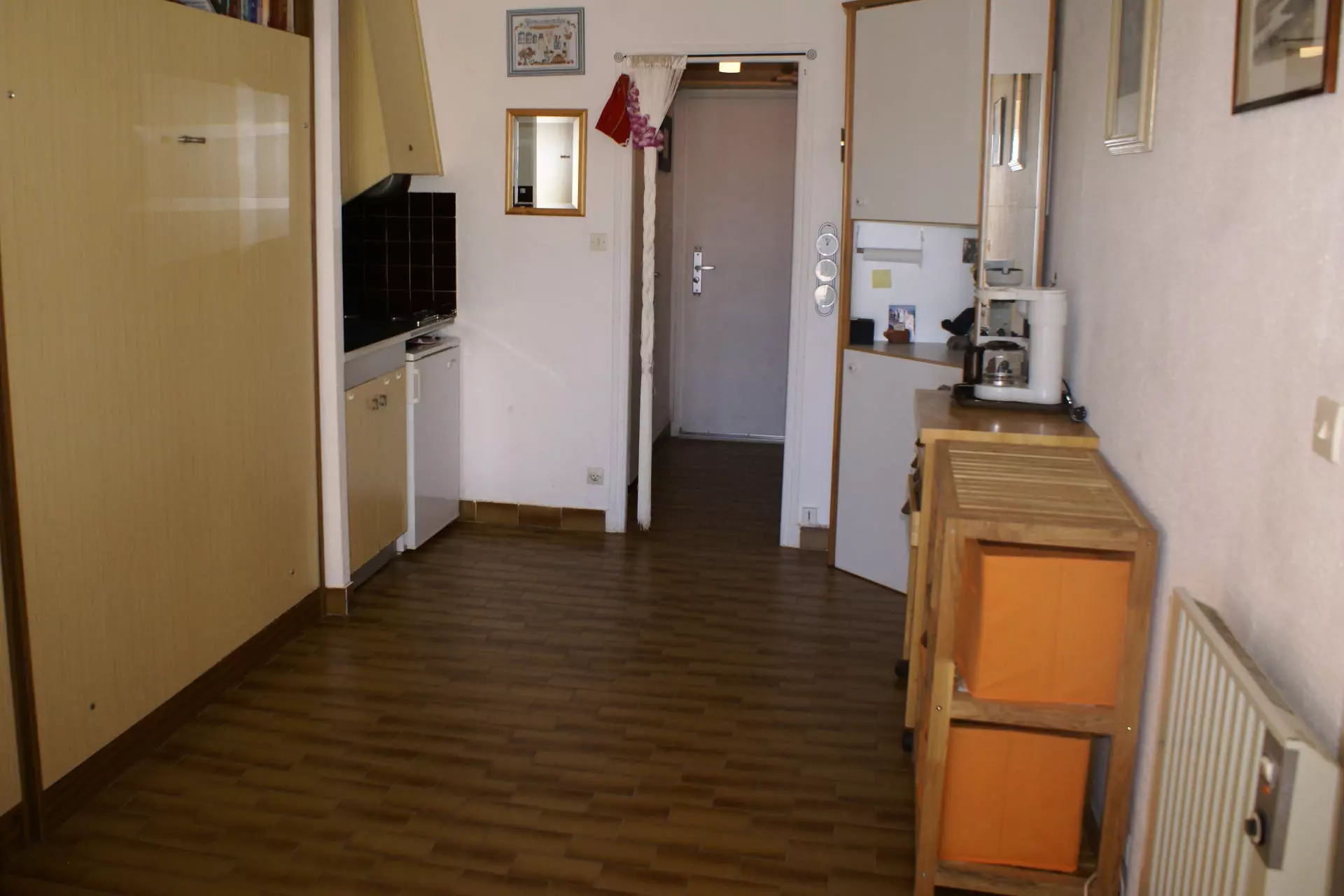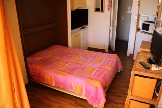 Studio für 2 Personen, gebrauchter Zustand, gelegen im Eingang Héliopolis FGH, im 1. Stock ohne Aufzug, Innenseite. Wohnzimmer mit Schrankbett. Kochnische mit Mikrowelle, Kaffeemaschine... Duschraum mit WC. Große Terrasse, nach Osten ausgerichtet. Parkplatz Nr. 148.