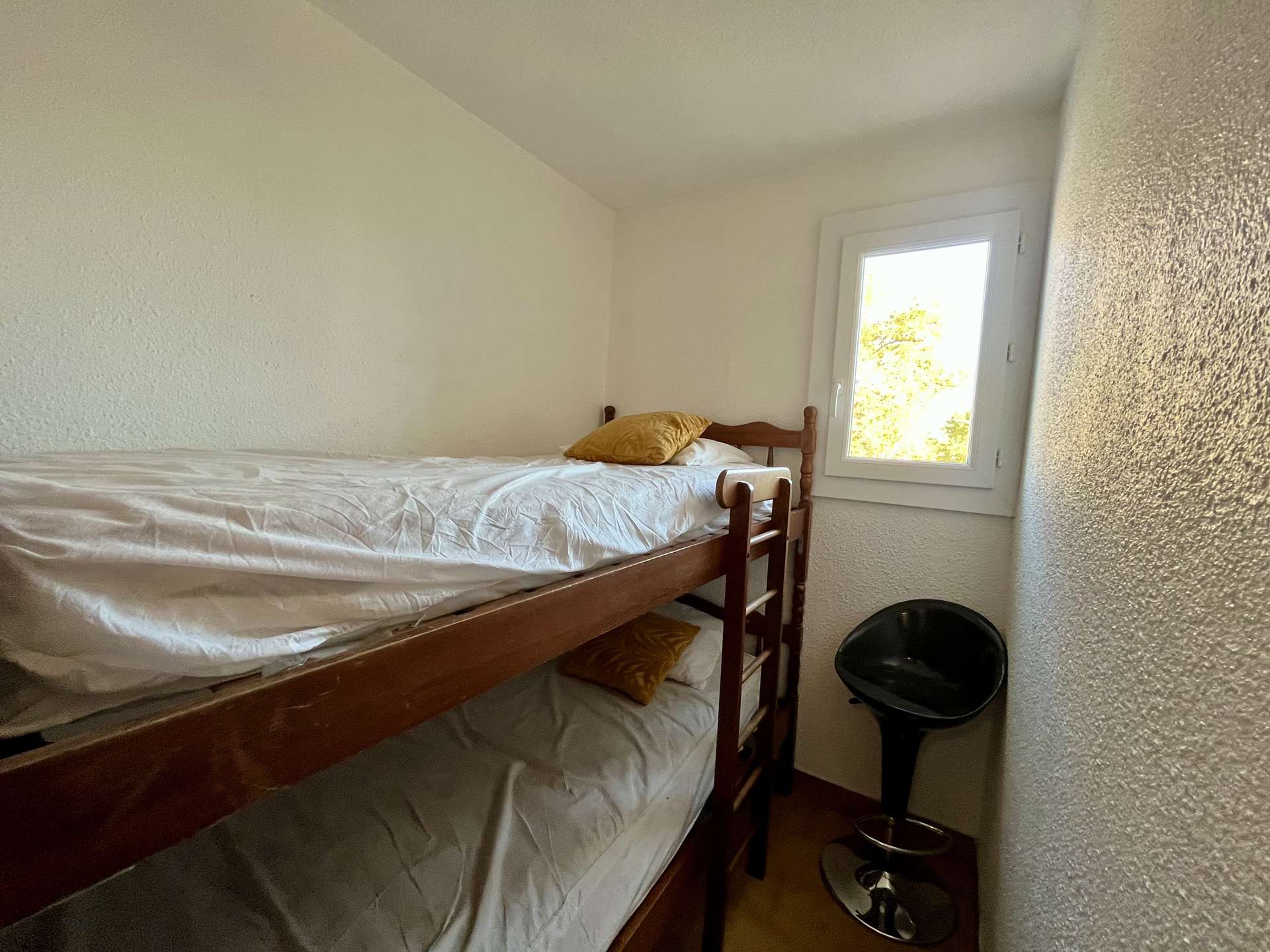 Diese Ferienwohnung im 3. Stock (mit Aufzug erreichbar) bietet ein Wohnzimmer mit Sofa, ein separates Schlafzimmer mit Doppelbett, ein Kinderzimmer mit zwei Etagenbetten, eine voll ausgestattete Küchenzeile, ein Badezimmer und ein separates WC. Haustiere sind erlaubt.